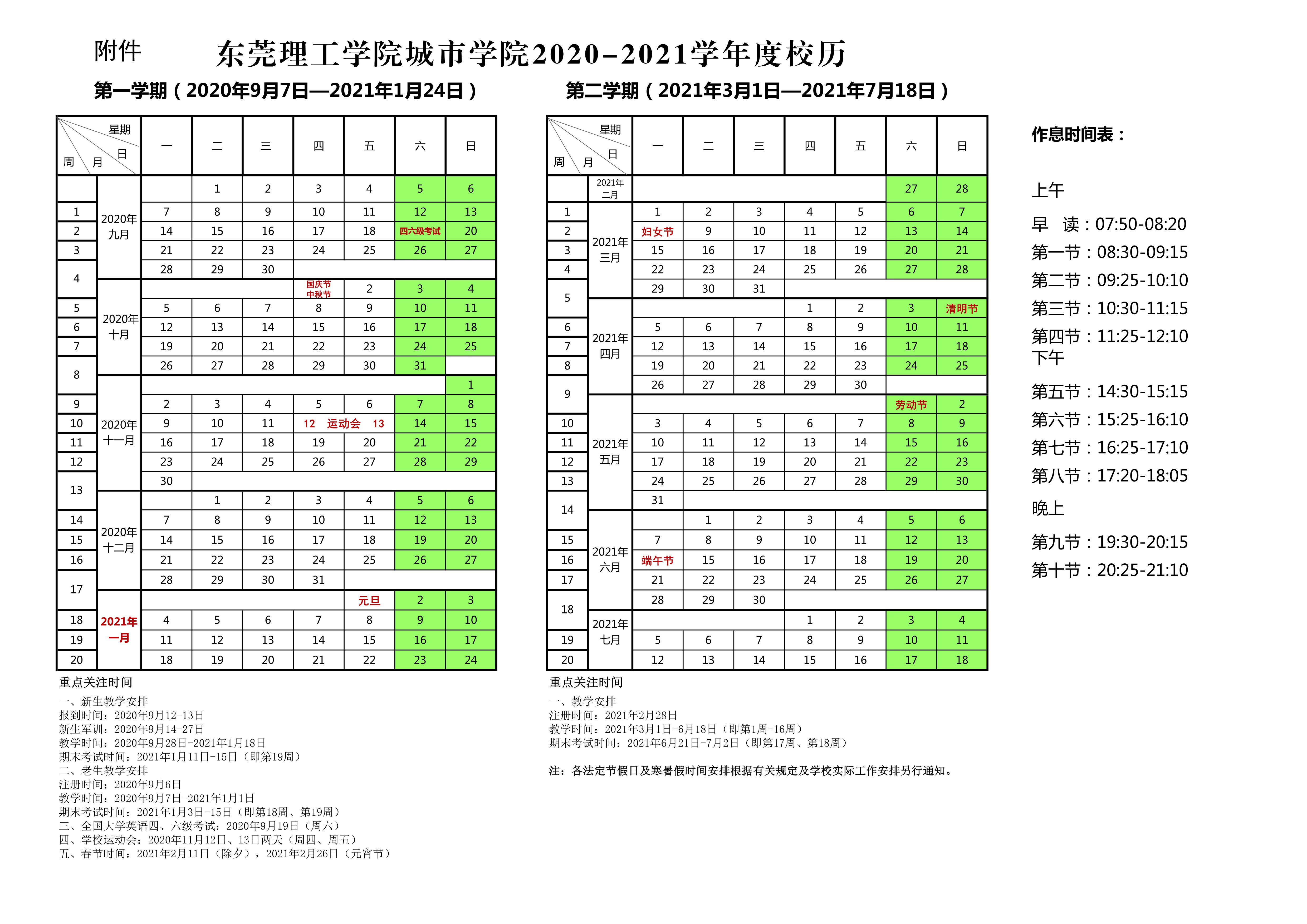2020-2021学年度校历