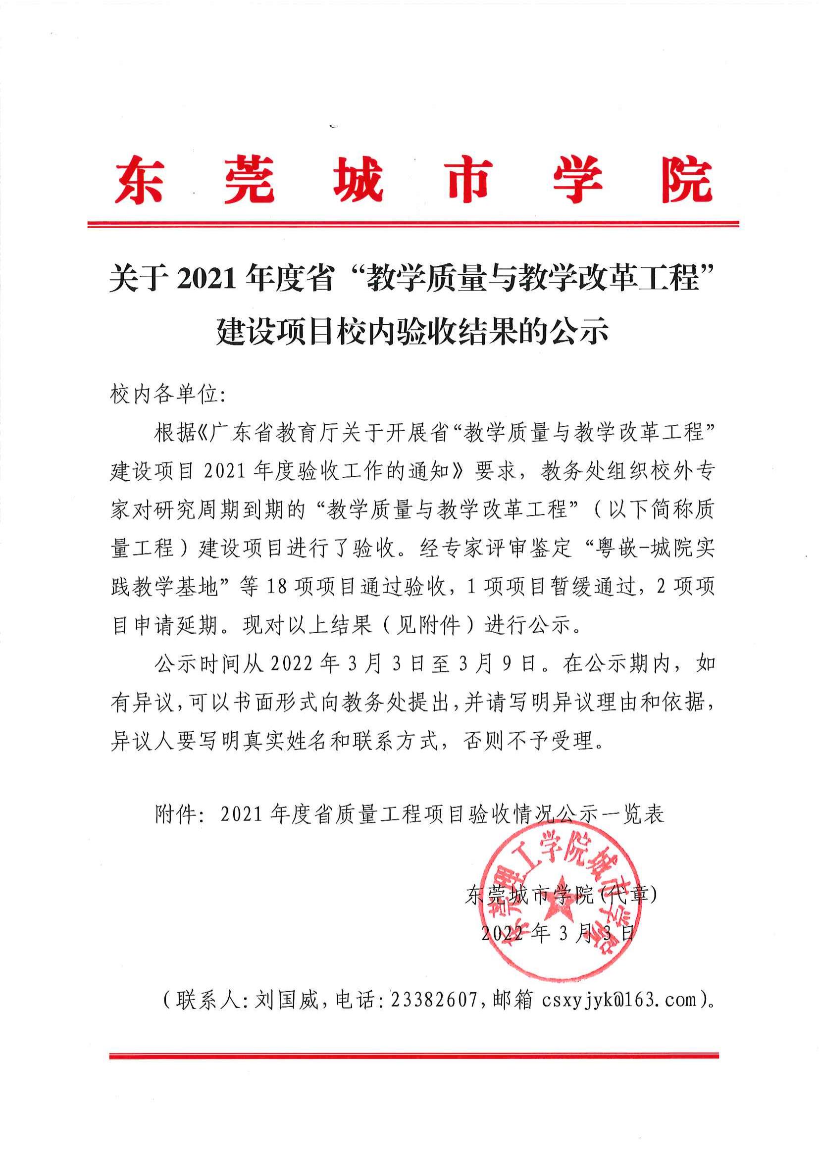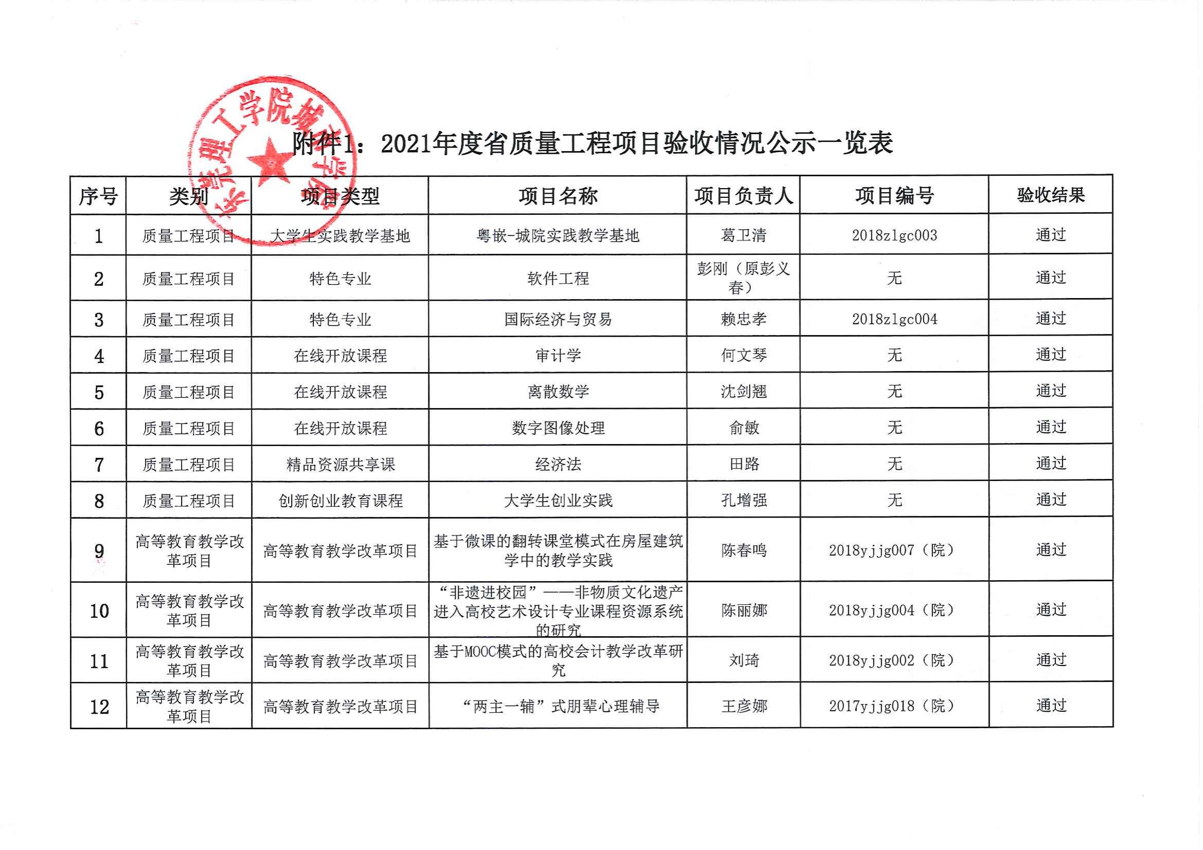 关于2021年度省“教学质量与教学改革工程”建设项目校内验收结果的公示