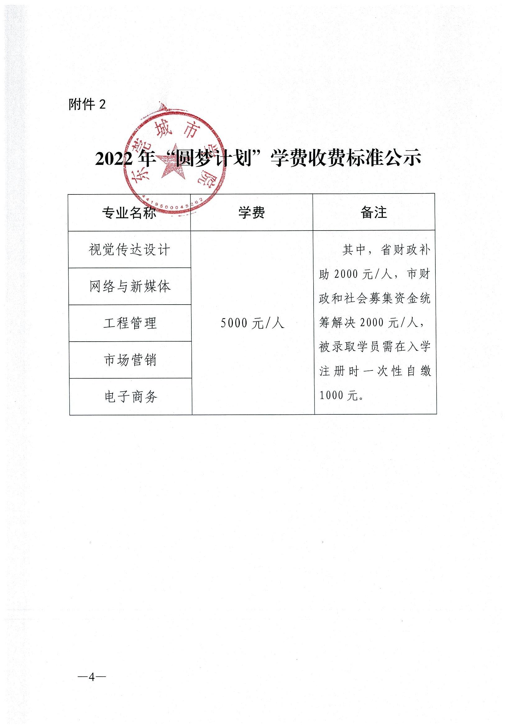 关于2022年高等学历继续教育(成人本科)和“圆梦计划”收费标准公示