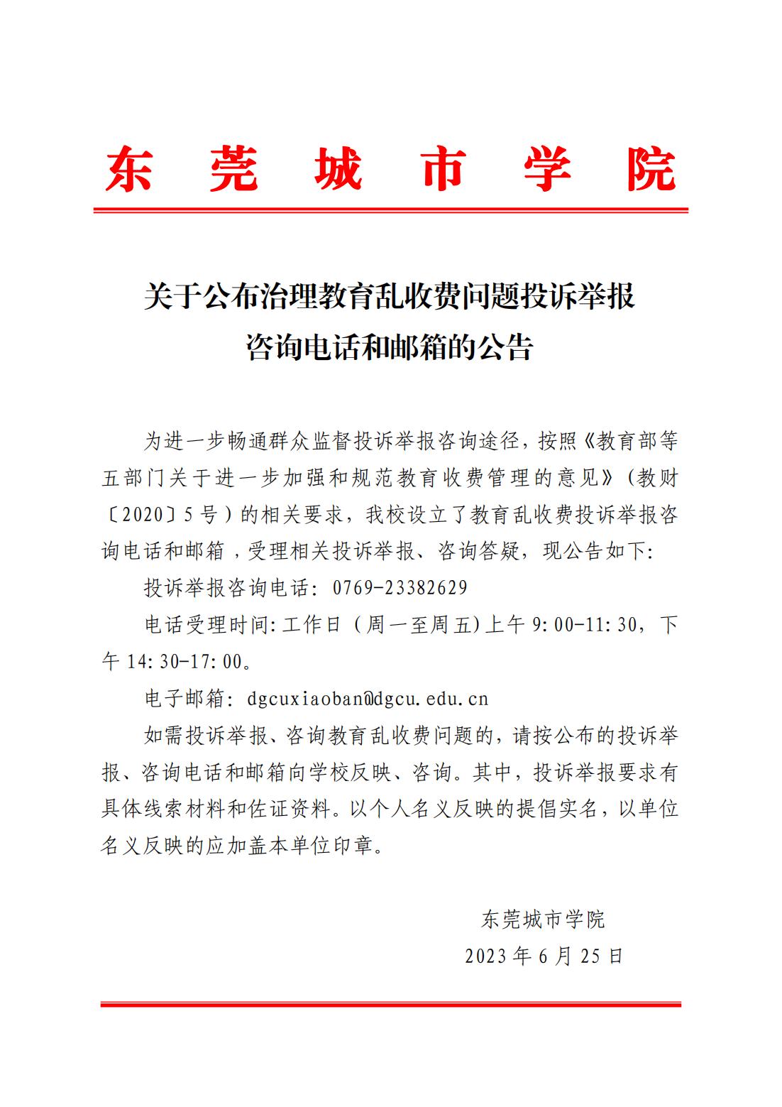 关于公布治理教育乱收费问题投诉举报咨询电话和邮箱的公告