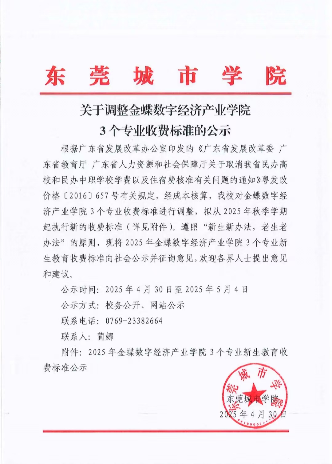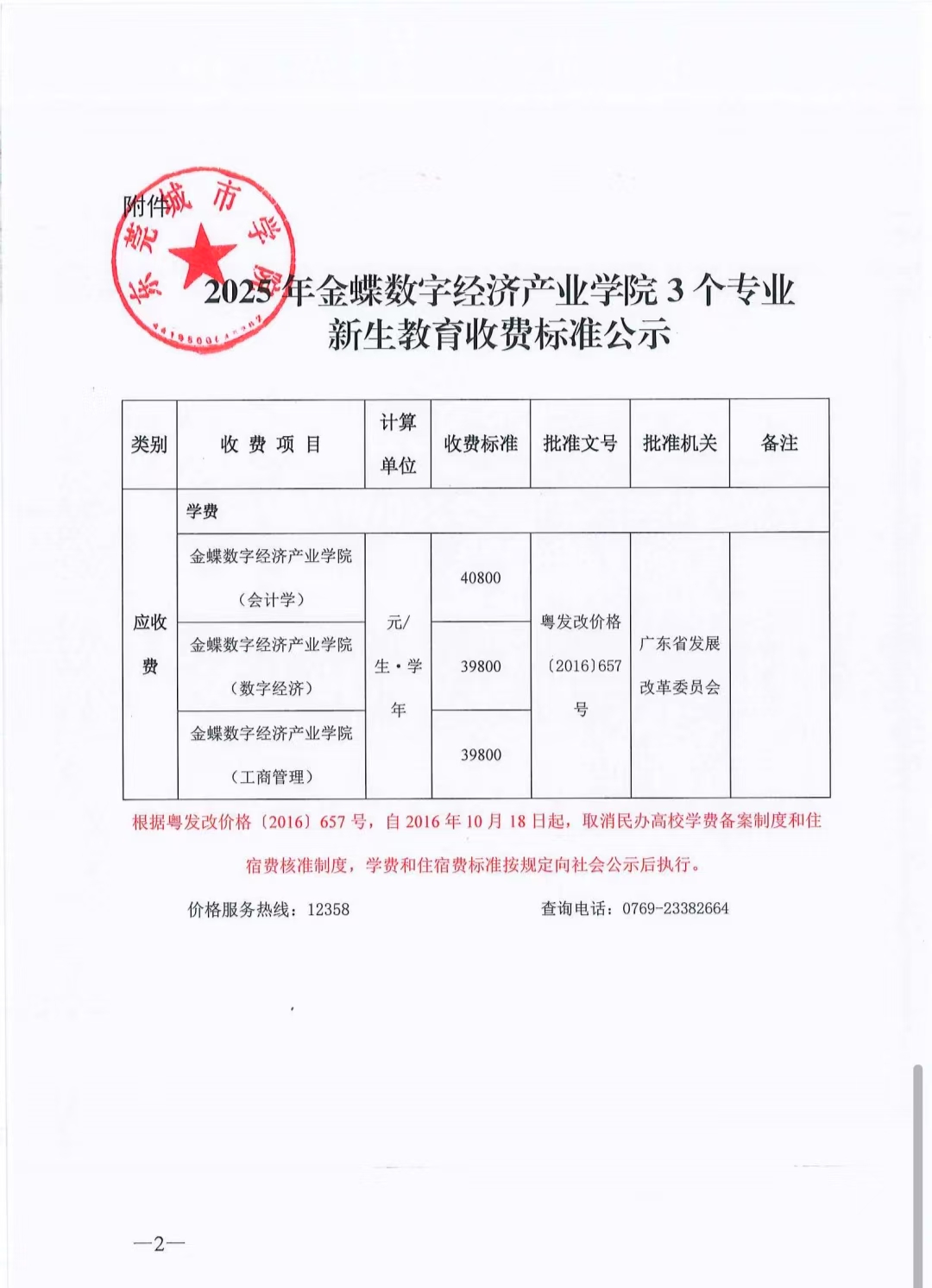 关于调整金蝶数字经济产业学院3个专业收费标准的公示