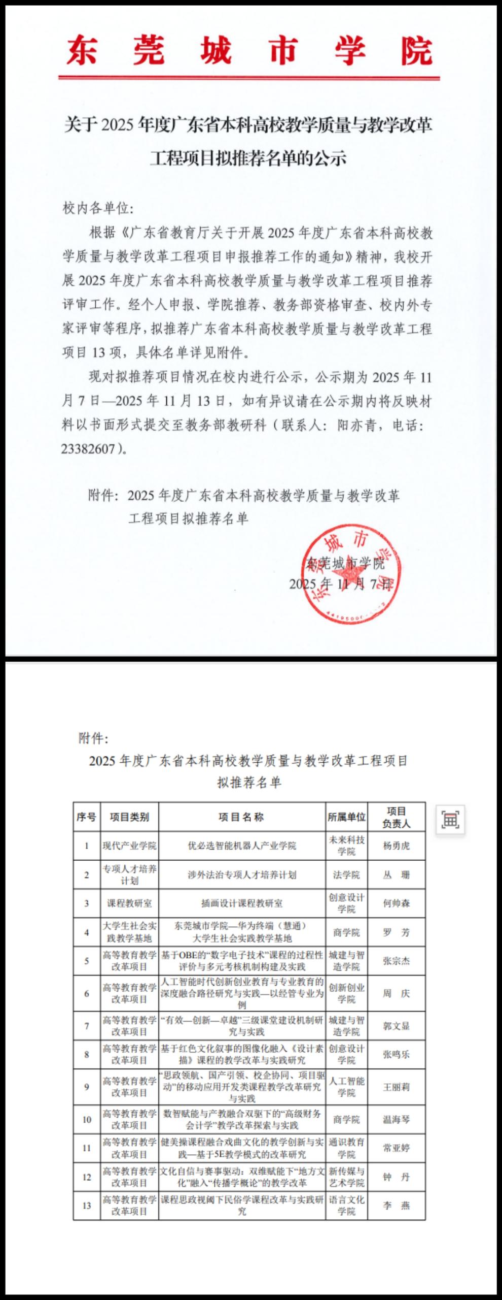 关于2025年度广东省本科高校教学质量与教学改革 工程项目拟推荐名单的公示